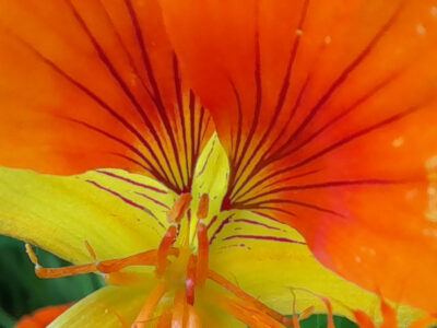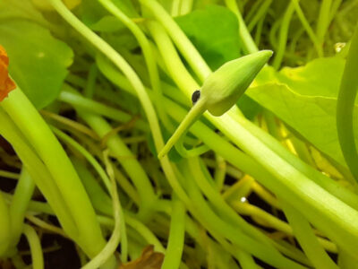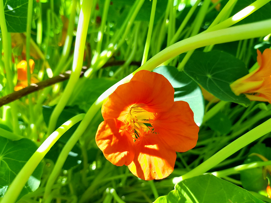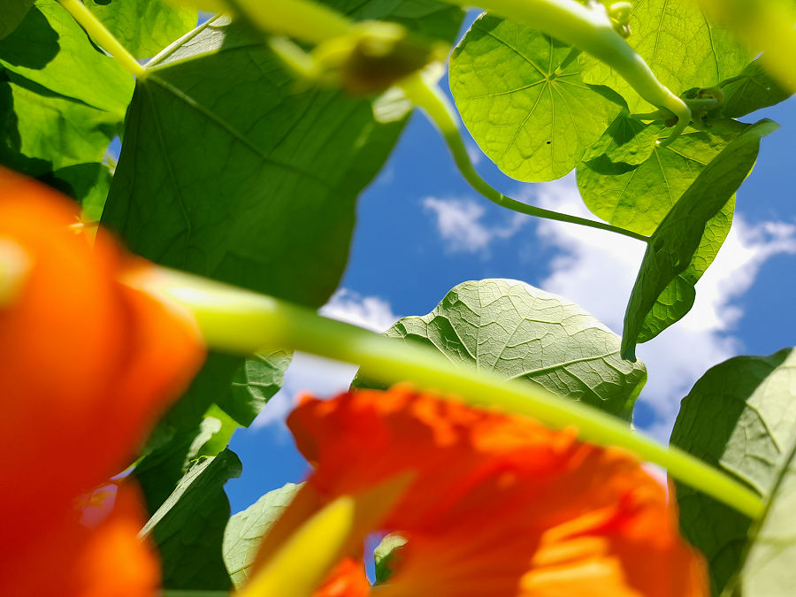 Wusstet ihr übrigens, dass die Blüten und Blätter der Kapuzinerkresse essbar sind? Sie schmecken sehr lecker… leicht scharf und würzig, ähnlich wie die Gartenkresse.